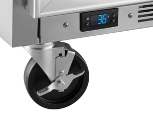 - Stainless steel front, sides, and top with corrosion-resistant aluminum interior; 3" casters