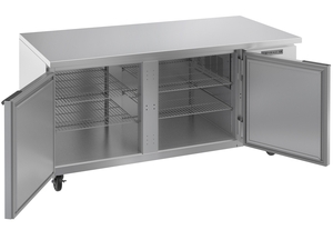 This 67" low profile undercounter freezer consistently maintains temperatures down to -10 degrees Fahrenheit which can be monitored with a full electronic control. It has a 2" thick polyurethane insulation and 3/4 hp compressor that runs on eco-friendly R290 refrigerant, which has an ozone depletion (ODP) of 0 and a global warming potential (GWP) of 3 making it an environmentally-responsible choice for your business.