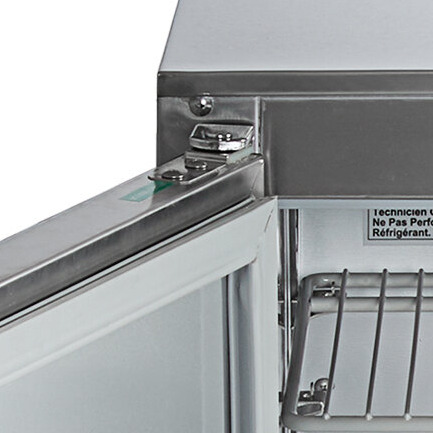The self-closing door has a 120 degree stay-open feature, while the magnetic gasket creates a positive seal to reduce temperature loss.