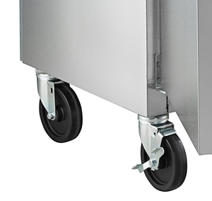 It also comes with 2 3/4" casters, making it easy to move the refrigerator for cleaning and maintenance. It also lowers the overall height of the unit, making it great for low counters and other areas with limited space. Two of these casters include brakes, steadying the unit for safe use.