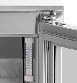 The self-closing door has a 120 degree stay-open feature, while the magnetic gasket creates a positive seal to reduce temperature loss.