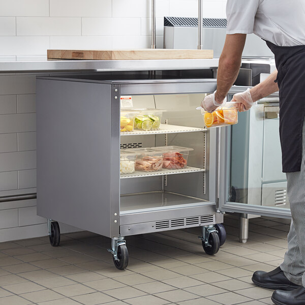 Dealing with limited space can make things hectic in a high-traffic commercial kitchen, so maximize your real estate with this undercounter freezer! Made of a durable, heavy-duty stainless steel exterior and aluminum interior, this unit is durable for frequent use in your commercial kitchen. This unit requires a 115V electrical connection for operation.