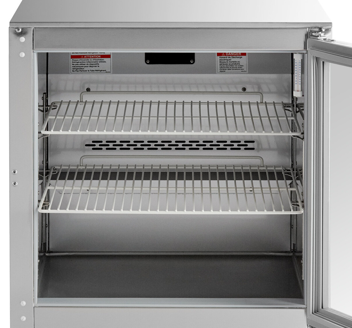 Because it's glass, the door provides product visibility and makes it quick and easy to retrieve ingredients. The hinge can be installed on the opposite side, so if your space requirements change, you can adjust the unit accordingly. The door comes hinged on the left-side to open in spaces where standard doors lack ample clearance. Two shelves are included with the unit so that your products can be well-organized to promote shorter open-door times. To stop germs in their tracks, the handle is antimicrobial.