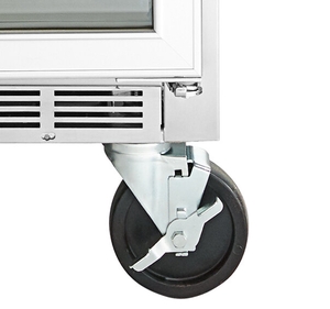 After a long day of loading and unloading, easily clean around the unit by moving the refrigerator aside on its 6" casters. When the unit is in use, lock the two caster brakes for safe, stationary use.