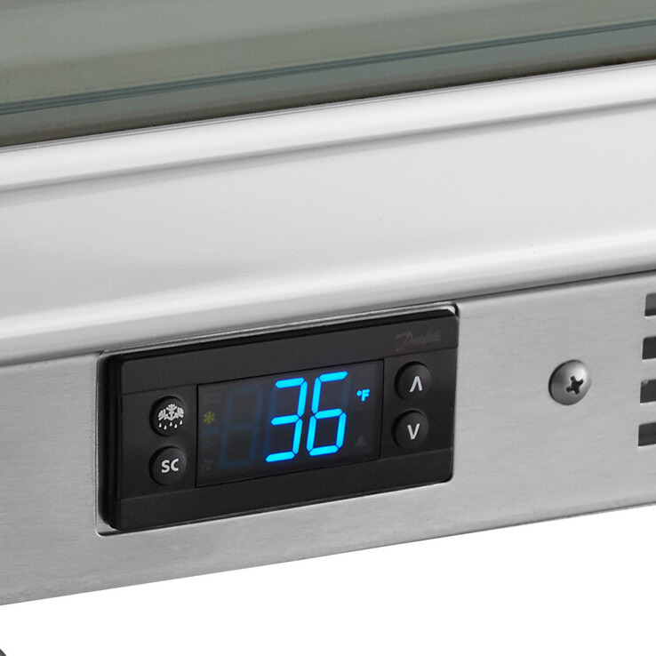 Made of a durable, heavy-duty stainless steel exterior and aluminum interior, this refrigerator is durable for frequent use in your commercial kitchen. It's built with a 1/2" thick sub-top and has a self-closing glass door with magnetic gasket that reduces temperature loss. An interior thermometer is standard too, so monitoring the temperature is easy. Plus, the full mechanical controls help to further simplify operation. This unit requires a 115V electrical connection for operation.