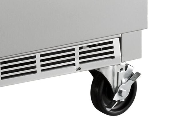 Made of a durable, heavy-duty stainless steel exterior and aluminum interior, this refrigerator is durable for frequent use in your commercial kitchen. It's built with a 1/2" thick sub-top and has a self-closing door with magnetic gasket that reduces temperature loss. Plus, a stay-open feature makes it great for high-volume loading and unloading, and cam-lift hinges eliminate door sagging for long-lasting service.