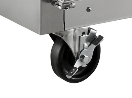 This unit comes with (4) 6" casters. When the unit is in use, lock the two caster brakes for stationary use.