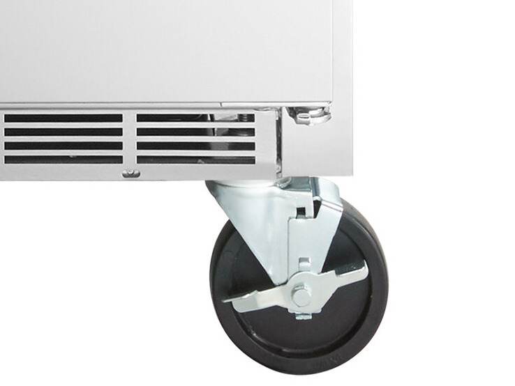 A set of 6" casters, 2 with brakes, makes it easy to move the unit for cleaning and maintenance.