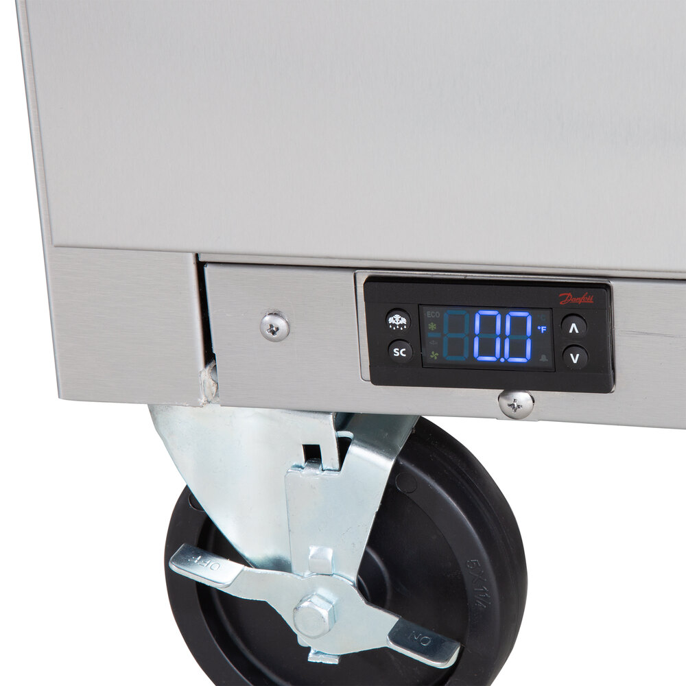 It also comes with 2 3/4" casters, making it easy to move the freezer for cleaning and maintenance. It also lowers the overall height of the unit, making it great for low counters and other areas with limited space. Two of these casters include brakes, steadying the unit for safe use.
