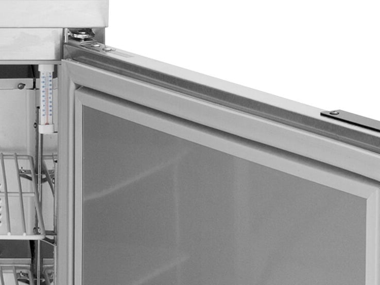A self-closing door design reduces temperature loss, while a 120 degree stay-open feature makes loading and cleaning easier. The magnetic gasket creates a positive seal to keep cold air in and warm air out.