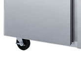 This model comes with a durable stainless steel worktop that makes it great for prep work, while the 4" built-in backsplash catches any spills from food debris and is foamed-in-place for maximum insulation. With a stainless steel front, sides, and door design, this unit can stand up to the rigors of even fast-paced kitchens, and since the interior liner is made from aluminum, you won't need to worry about rust and corrosion compromising the safety of the food you serve. The interior of this unit comes with 4 epoxy-coated shelves to accommodate any storage need and to give you the flexibility to meet changing menu needs. This model requires a 115V electrical connection