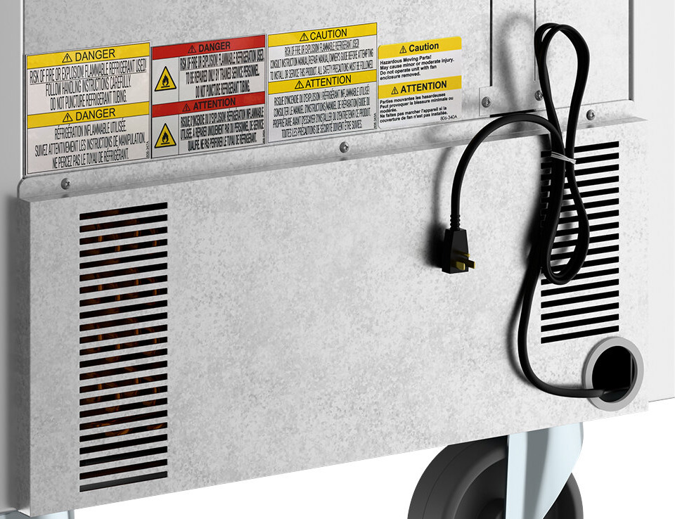 Thanks to its 1/6 hp compressor, this undercounter fridge's CFC-free, balanced refrigeration system maintains temperatures between 36 and 38 degrees Fahrenheit. This unit uses eco-friendly R290 refrigerant. An interior thermometer is included, allowing you to always monitor the temperature of your product. The cabinet is designed to perform in ambient temperatures of 100 degrees Fahrenheit.