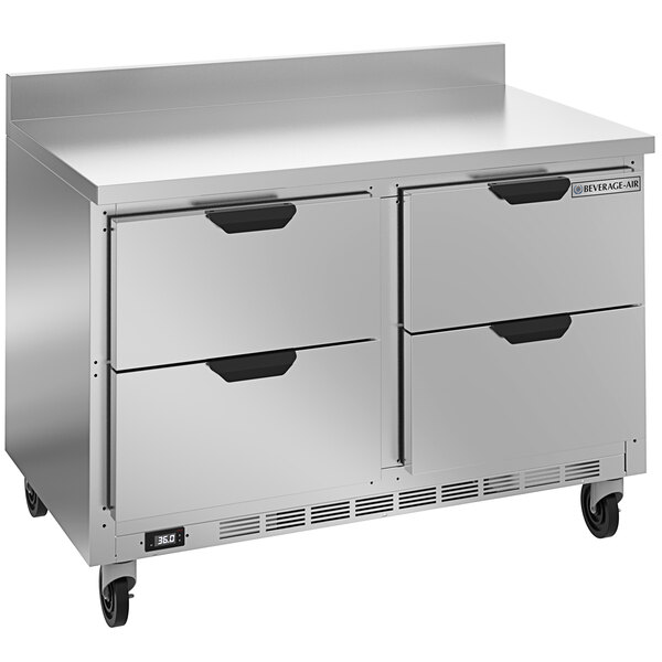 - Item #: 185wrd48a4fhBeverage-Air WTRD48AHC-4-FIP 48" Compact Worktop Refrigerator with Four Drawers and 4" Foamed-In-Place Backsplash