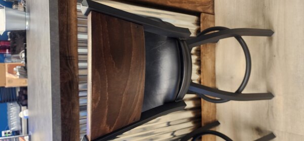 Whether patrons are cozying up to your bar at happy hour, indulging in a delicious breakfast, or watching the world pass by in your window-side dining area, this simple yet attractive BFM Seating Dale sand black metal swivel bar height chair with solid walnut finish wooden back is sure to present them with a comfortable place to perch! In addition to a 2" thick, cushioned black vinyl seat that delivers exceptional comfort, a solid walnut finish wooden back adds a distinct visual appeal to your restaurant, bar, cafeteria, or game room. Plus, a swivel design allows for easy access to the bar without restricting conversations!