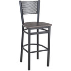 Ensure that your guests enjoy an ideal dining experience with this BFM Seating Polk sand black steel perforated back barstool with Relic antique wash melamine seat. Perfect for bars, bistros, restaurants, or coffee shops, this item features an attractive yet durable steel frame with a sand black powder coat finish. Its perforated back design also offers optimal spinal support while adding a distinct visual appeal. It even pairs beautifully with the unique grains and lines of the Relic antique wash seat! Plus, the melamine seat comes with a matching color fast PVC edge and mimics the look of solid wood without the extra cost and potentially cumbersome weight. Additionally, the convenient footrest helps reduce pressure on customers' lower backs and legs.