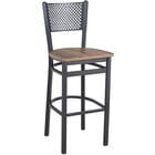 BFM Seating Polk Sand Black Steel Perforated Back Barstool with Relic Antique Wash Melamine Seat