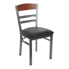 BFM Seating Barrick Clear Coat Steel Side Chair with Autumn Ash Wood Back Panel and Black Vinyl Seat