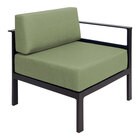 This sofa section sports a durable aluminum frame that is made to last yet is light weight and easy to transport. The fade-resistant powder-coated finish not only enhances the visual appeal but also ensures that the sofa maintains its sleek appearance over time. The eye-catching contemporary design of this unit adds a touch of modern elegance to any space. Whether used indoors or outdoors, this sofa section is ideal for creating inviting lounge areas. Elevate the ambiance of your establishment with this stylish and comfortable seating option from BFM Seating.