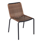 More durable and easier to maintain than real wicker, this comfortable side chair will help revamp your indoor cafe, bar, or outdoor patio. This rugged construction withstands outdoor use since it won't wear out or fade as quickly, which is especially useful for when the chairs are exposed to bright sun or light rain showers. Thanks to the stackable design, this chair provides compact storage when not in use.