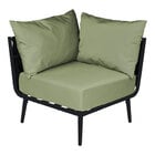 Enhance your indoor or outdoor lounge areas with the BFM Seating Cayman black outdoor couch corner section featuring a sleek and modern contemporary design. Crafted with a powder-coated aluminum frame and water-resistant, flat polyester woven rope sides and back, this couch section is as durable as it is stylish. The Sunbrella fabric seat cushion and back pillows provide superior comfort and relaxation, perfect for guests to sit back and unwind after a long day. Whether placed in a trendy cafe or on a luxurious patio, this couch section is sure to make a statement and elevate the ambiance of any space.