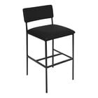 Enhance the ambiance of your commercial establishment with the BFM Seating Meghan black powder-coated steel barstool. Crafted with a durable powder-coated steel frame, this barstool is built to withstand the demands of high-traffic environments. The contoured back provides optimal comfort for patrons, making it an ideal seating option for bars, restaurants, or lounges. Its sleek and modern design adds a touch of contemporary style to any space, while the gray vinyl back and seat offer a sophisticated and polished look.