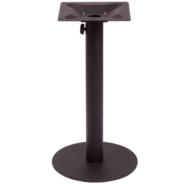 Add a contemporary feel to your dining area with this BFM Seating Margate standard height round table base! Suitable for use indoors or outdoors, this base positions SoHo, Chelsea, and Longport table tops at the perfect cafe height, making it great for pizzerias, delis, and bars. For outdoor applications, this base comes with a pre-drilled umbrella hole, allowing you to keep your guests cool and shaded on hot, sunny days without the need for an additional umbrella base.