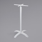 The aluminum post measures 3" in diameter and is capped with a large top spider. At the other end of the post, the cast aluminum base is weighted to ensure stability. It also boasts a modern cross design and large adjustable slides. For a great dining experience, this base helps provide a sturdy foundation for you to serve your signature drinks, crowd-favorite appetizers, decadent desserts, and everything in-between!