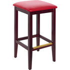 Add comfortable, modern seating to any area with this BFM Seating Stockton dark mahogany beechwood square backless barstool with 2" black walnut brown vinyl seat. This barstool boasts a durable beechwood construction that resists chipping and scratching more than traditional woods. Its dark mahogany stain creates a sleek, contemporary appearance while also helping to hide signs of wear better than lighter finishes. Plus, this barstool features a dipped, catalyzed lacquer finish that provides additional durability and accentuates the natural wood grain of the barstool's frame.