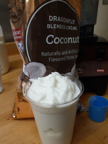 The Big Train Dragonfly Coconut Blended Creme Frappe Mix is my favorite of all of the mixes that I have tried so far. It tastes good and is very easy to use.