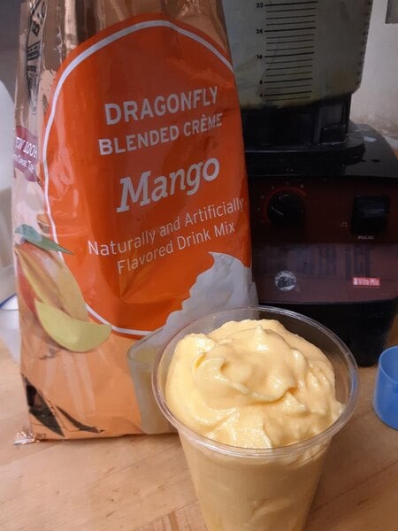 The big train mango blended powder is a huge hit in our store! Our customers love when we make smoothies or milk teas with it! The taste is bold and the color is beautiful. It blends nicely and you don’t have to worry about the extra powder floating around!