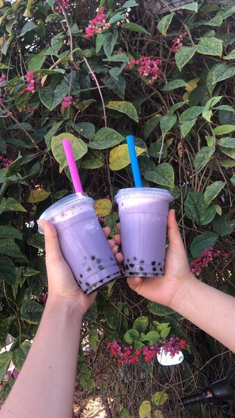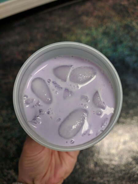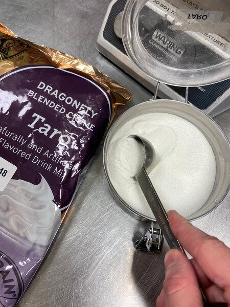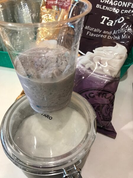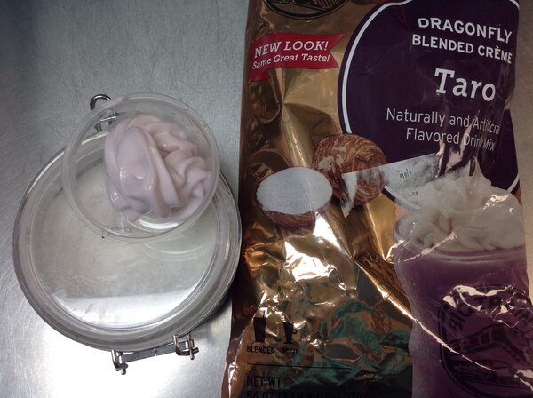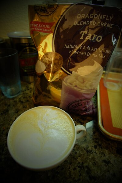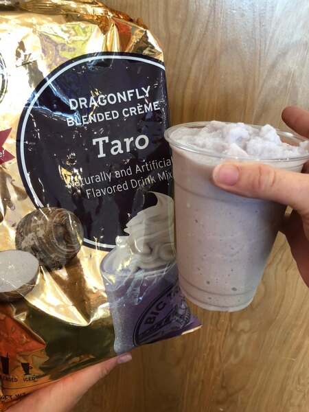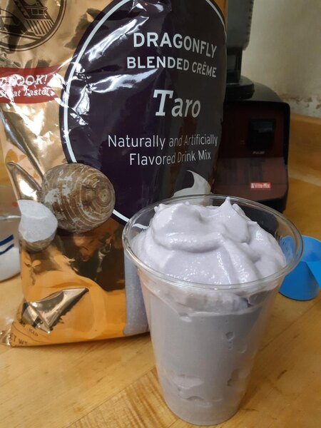 Don't buy it This powder is all white color, nothing but sugar Way too sweet, 31g of sugar per serving Taste too sweet and look too artificial again nothing but sugar it does have taro flavor