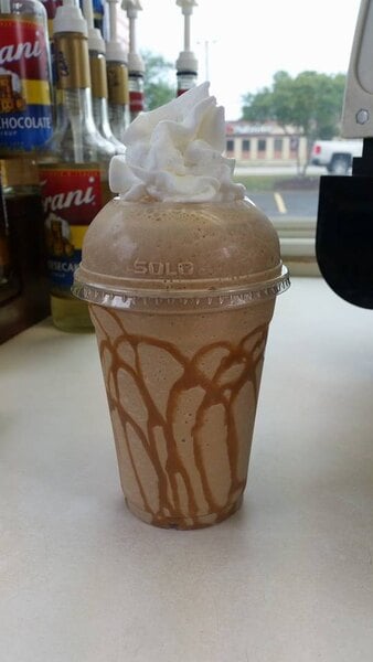 This big train mocha blend is so good with a caramel drizzle. I love the mocha flavor alone but it is pretty amazing combined with flavored syrups.