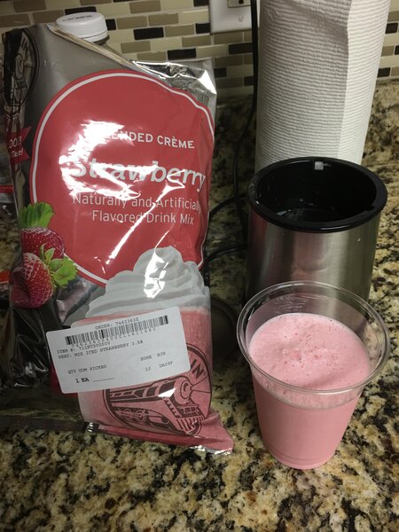 The Big Train Strawberry Blended Creme Frappe Mix tastes really good and is easy to use for making frappes and other specialty beverages. We will buy again.