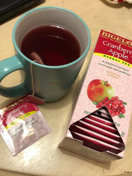 This Bigelow cranberry apple herb tea tastes great and is a great quality! It is exactly the same brand you would find in grocery stores but there is a better selection on here.