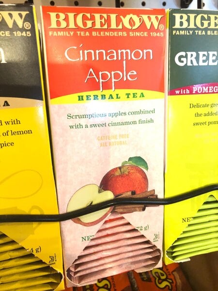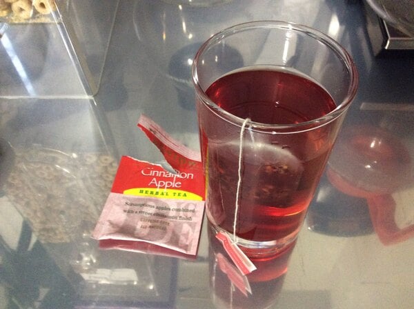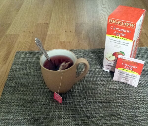 This Bigelow cinnamon apple herbal tea is great especially with a cinnamon stick steeping with the tea bag! it reminds me of apple cider without all the sugar
