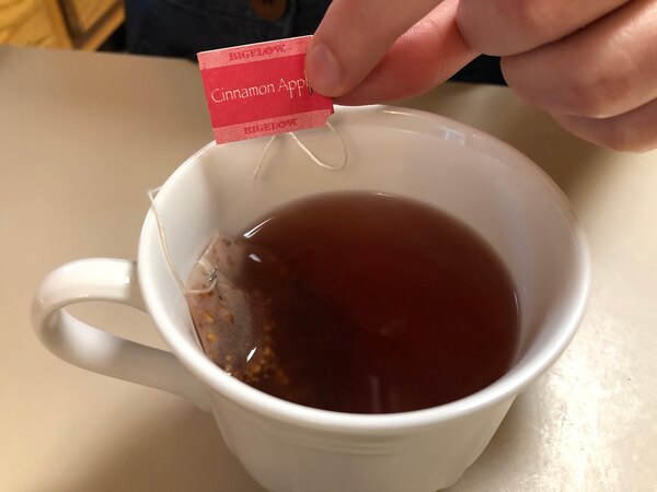 Bigelow's Cinnamon Apple Herb Tea is a very popular flavor in the Fall time. We serve this tea with a cinnamon stick to provide guests with an extra cinnamon flavor.
