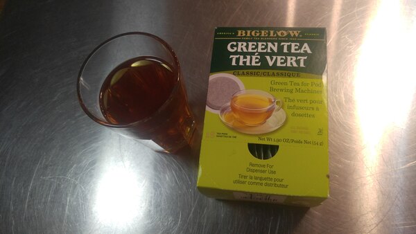 The green tea pods by Bigelow is easy to use with the pod coffee machine but I have also let it steep in a cup of hot water. It is moderately light in a Amber color and flavor.