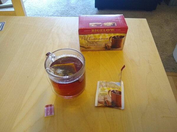 The Bigelow Hot Cinnamon Black Tea has a great spicy flavor. There is a strong flavor of cinnamon that would be great for drinking in the winter!