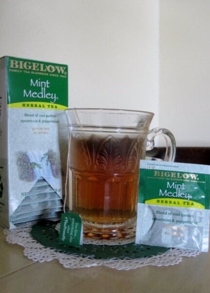 Featuring a blend of fresh garden spearmint and peppermint, this Bigelow Mint Medley herbal tea will quickly become a customer favorite! Aromatic and flavorful, Bigelow Mint Medley tea has an all-natural, cool and crisp taste. Though this herbal tea is naturally caffeine-free, it is made from an invigorating blend of peppermint leaves, spearmint leaves, rose hips, lemon peel, and hibiscus. Bigelow mint medley herb tea features a golden color and bursts with soothing mint flavors to spruce up any drink menu!