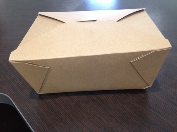 Nice eco friendly kraft paper take out containers by Bio-Plus-Earth. These are large enough for almost any item, and made from recycled paper. My only complaint is they can be hard to close sometimes.