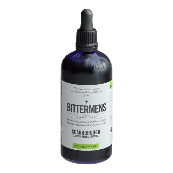 Add a tasty and intriguing twist to your signature cocktails with these Bittermens Scarborough savory herbal bitters! Inspired by a classic folk song, these cleverly crafted bitters combine parsley, sage, rosemary, and thyme with herbes de Provence to create an herbal flavor evocative of dry vermouth that adds complexity to a wide variety of cocktails. Their remarkable flavor pairs well with tequila, gin, mezcal, and vodka drinks, and makes a great addition to any beverage needing a bit of herbal complexity. Add a splash to martinis, kick a basil julep up a notch, or use these bitters to bring out the character of an herbed sour. Whether you're mixing up drinks in your bar, lounge, or restaurant, these bitters are a great way to add a new dimension of flavor to your drinks!