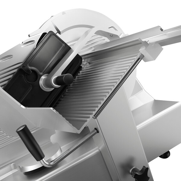 Its reliable 1/2 hp motor rotates the razor sharp 13" hard alloy blade at 319 RPM, allowing you to quickly and efficiently slice up fresh deli meats, cheeses, fruits, and vegetables for the perfect signature menu items. Chromium-coated with 60-62 Rockwell hardness at the edge, this blade is the hardest, thinnest, largest, and straightest blade in the industry. The slicer's sophisticated design uses high-end materials and will endure prolonged operation in commercial kitchens without overheating.