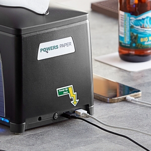 Powers Paper Black Interfold Napkin Dispenser with Power Bank Phone Charger