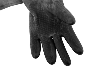The black natural latex gloves are a great pair of utility gloves perfect for cleaning and handling rough objects. The gloves are well made and a great quality.