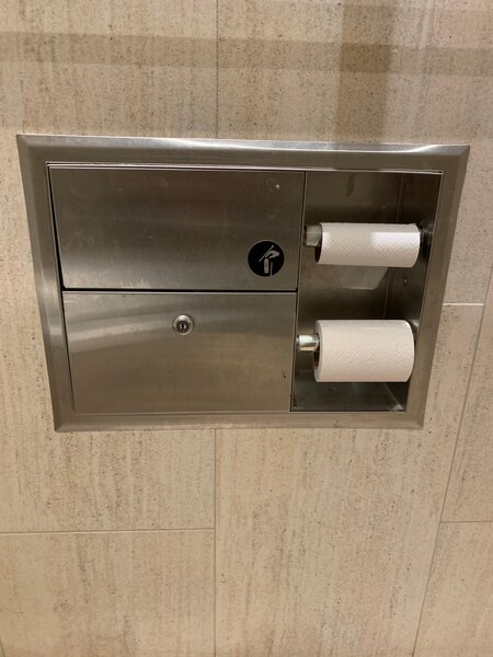 This Bobrick B-3094 ClassicSeries recessed sanitary napkin disposal and toilet tissue dispenser combines convenience with a sleek and clean appearance and equips your restrooms with essential feminine hygiene necessities! Made of durable 22-gauge stainless steel with all-welded construction, this dispenser's exposed surfaces have a high-quality satin finish. Its construction also gives this product excellent corrosion-resistance, making it ideal for restroom vicinities that can have high moisture levels. Plus, it's easy to clean and can withstand harsh cleaning solutions.