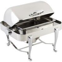 Bon Chef 19040CH Elite Rectangle 8 Qt. Dripless Stainless Steel with Chrome Accents Roll Top Chafer with Roman Legs
