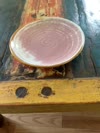 Find chef Talofa blush Aidans porcelain salad for you, interesting plate very pinkish color with orange stones around the edges probably would be good for a salad or small appetizer very sick and heavy duty plate.