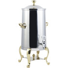 Serve hot beverages in style with this Bon Chef 49003-E Roman 3 gallon stainless steel coffee chafer urn. This sophisticated electric coffee urn can simply be plugged in to keep your beverages piping hot during service. It's the perfect addition to lengthy, upscale parties and catered events. Additionally, this coffee urn comes with brass trim for a beautiful addition to your beverage service tables. The stainless steel body is not only easy to clean but it can be polished to shine for a regal look that rivals its superior durability. You can also choose your desired spigot for easy pouring. This chafer urn's threaded lid is spill proof to minimize mess should the chafer get knocked over.