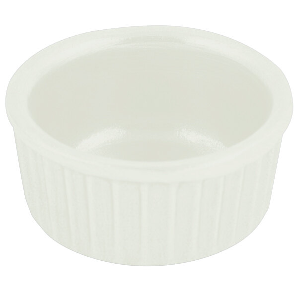 Give your tabletop a decadent design with this Bon Chef 9024 ivory sandstone finish cast aluminum 2 oz. fluted ramekin! From salad dressings to dipping sauces, this fluted ramekin is sure to enhance any presentation. Its sleek ivory color will complement any decor, while its cast aluminum construction ensures durability and allows for excellent cold retention. Virtually unbreakable, this ramekin is sure to last you through numerous buffets and meal services to come. Its ceramic look will be the perfect complement to your establishment.