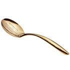 Ships free withServe your signature dishes in style with this Bon Chef 9464HFG 9 3/4" gold hammered stainless steel slotted serving spoon with hollow cool handle. Made with a durable stainless steel construction, this spoon is built to last in your busy establishment. The elegant style combined with a hammered gold finish makes it particularly ideal for front-of-house use at buffets, catered events, or parties. Plus, the hollow cool handle provides protection from heat and prevents painful burns. The handle is also ergonomically curved for a balanced and comfortable grip.